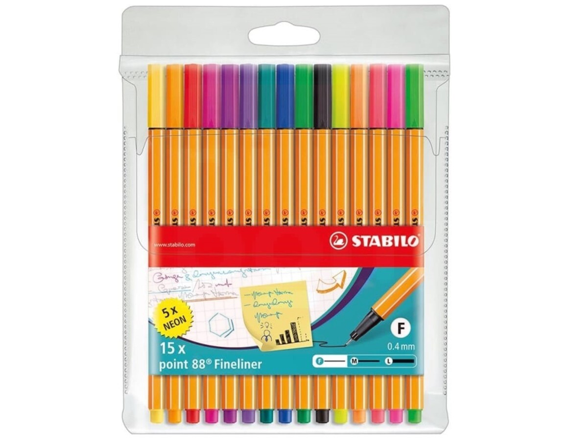 Caneta Stabilo Point 88 - Kit 15 Cores