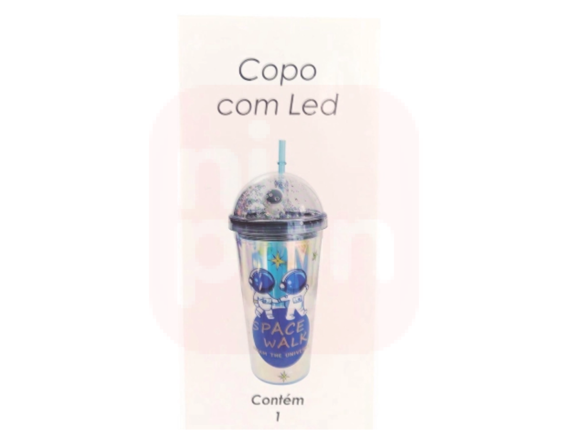 Copo Com Led Plástico E Canudo Personagem Astronauta 450Ml