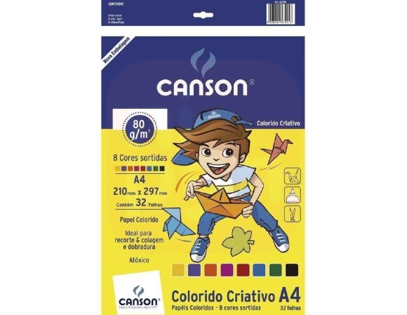 O bloco colorido criativo canson tem 32 folhas de 8 cores sortidas.