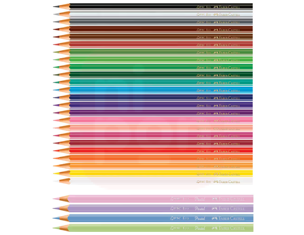 O Lápis de Cor 24 Cores + 4 Cores Pastel Faber-Castell é a escolha perfeita para quem busca variedade, suavidade e um toque de delicadeza nos desenhos. Além das 24 cores vibrantes já conhecidas pela qualidade Faber-Castell, o kit traz 4 tons pastel exclusivos, ideais para composições modernas, criativas e elegantes. Com corpo sextavado, ponta resistente e traço macio, esse conjunto é indicado tanto para uso escolar quanto artístico, oferecendo alta cobertura e conforto ao colorir.
