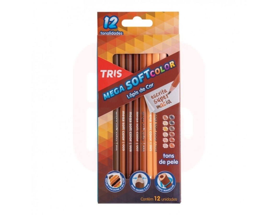 Lápis de Cor 12 Cores Tons de Pele Mega Soft Color - Tris