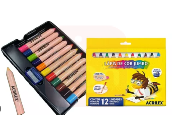 Lápis de Cor Jumbo 12 Cores 9621 ACRILEX