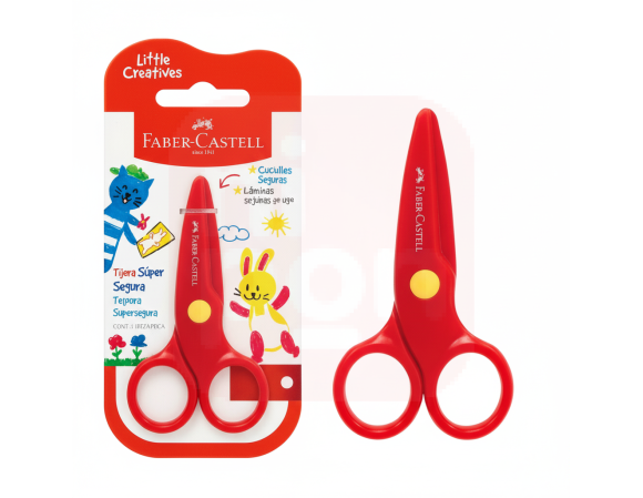 Estimule a criatividade e o desenvolvimento motor fino dos pequenos com a Tesoura Escolar Super Segura da Faber-Castell, parte da linha "Little Creatives". Projetada especificamente para as mãos pequenas das crianças, esta tesoura é a ferramenta perfeita para os primeiros passos no mundo do recorte, garantindo máxima segurança durante o aprendizado.